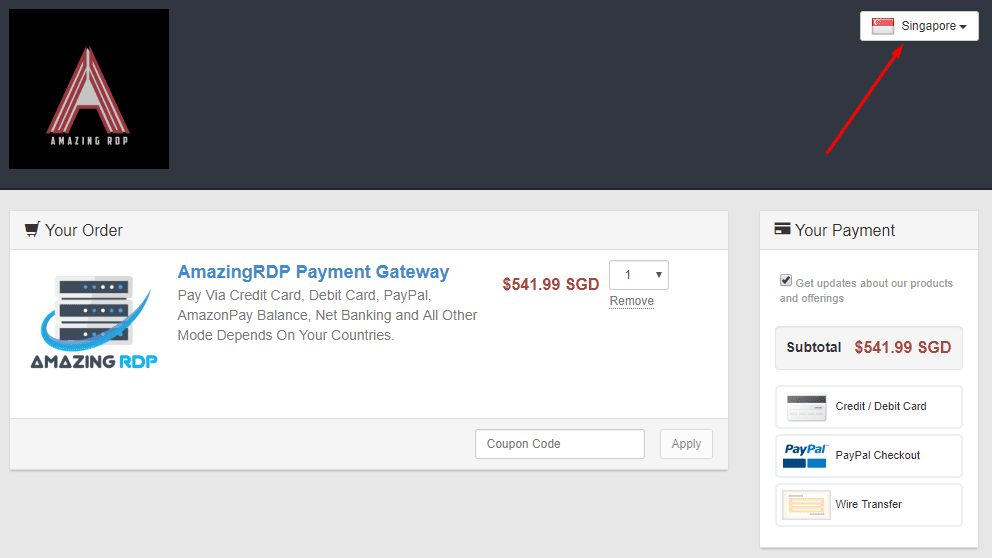 5. You’ll redirect to AmazingRDP Payment Gateway. Choose Currency as per your country or you can leave it as it is.