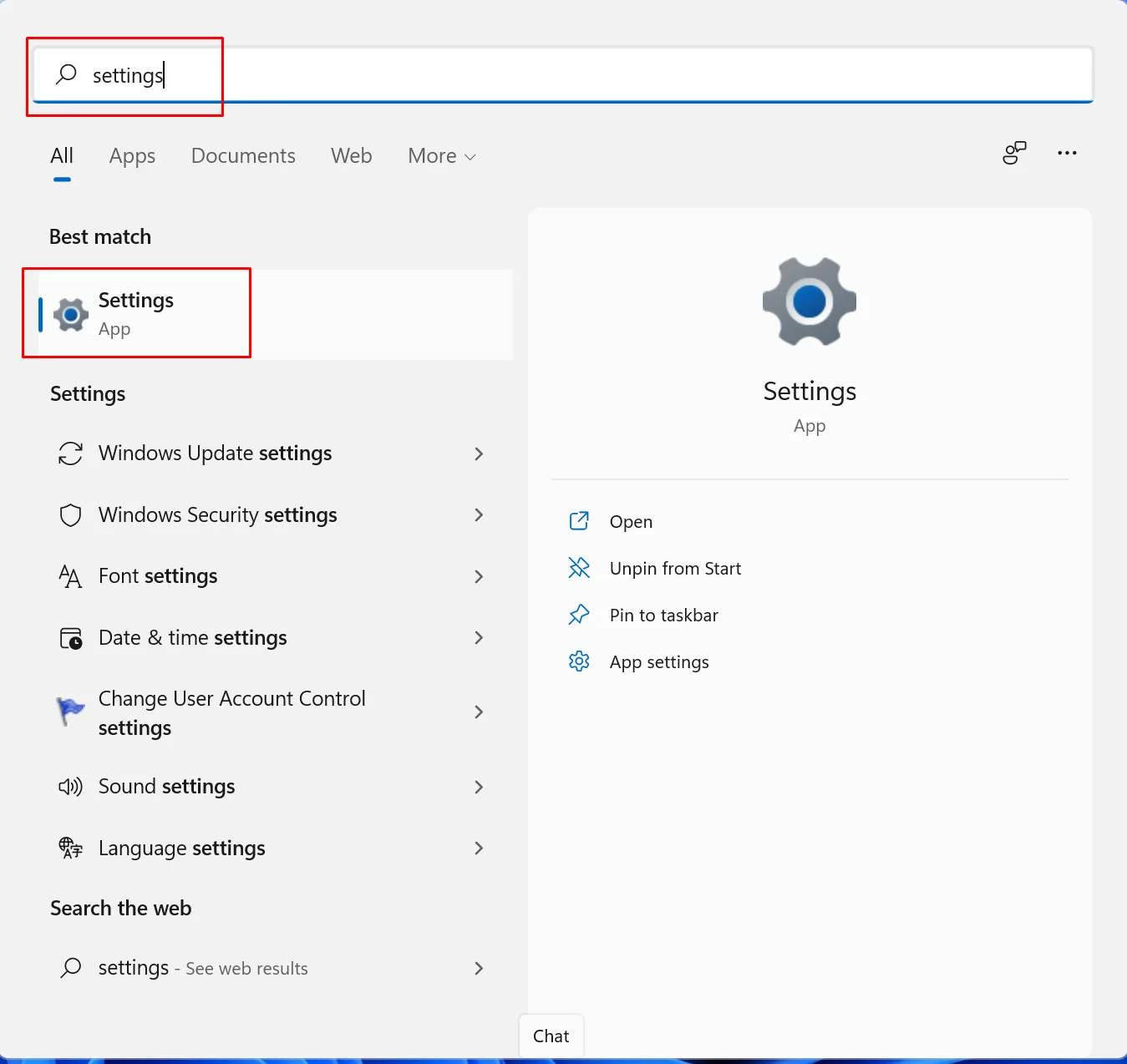 - Now type settings and Press Enter Key.