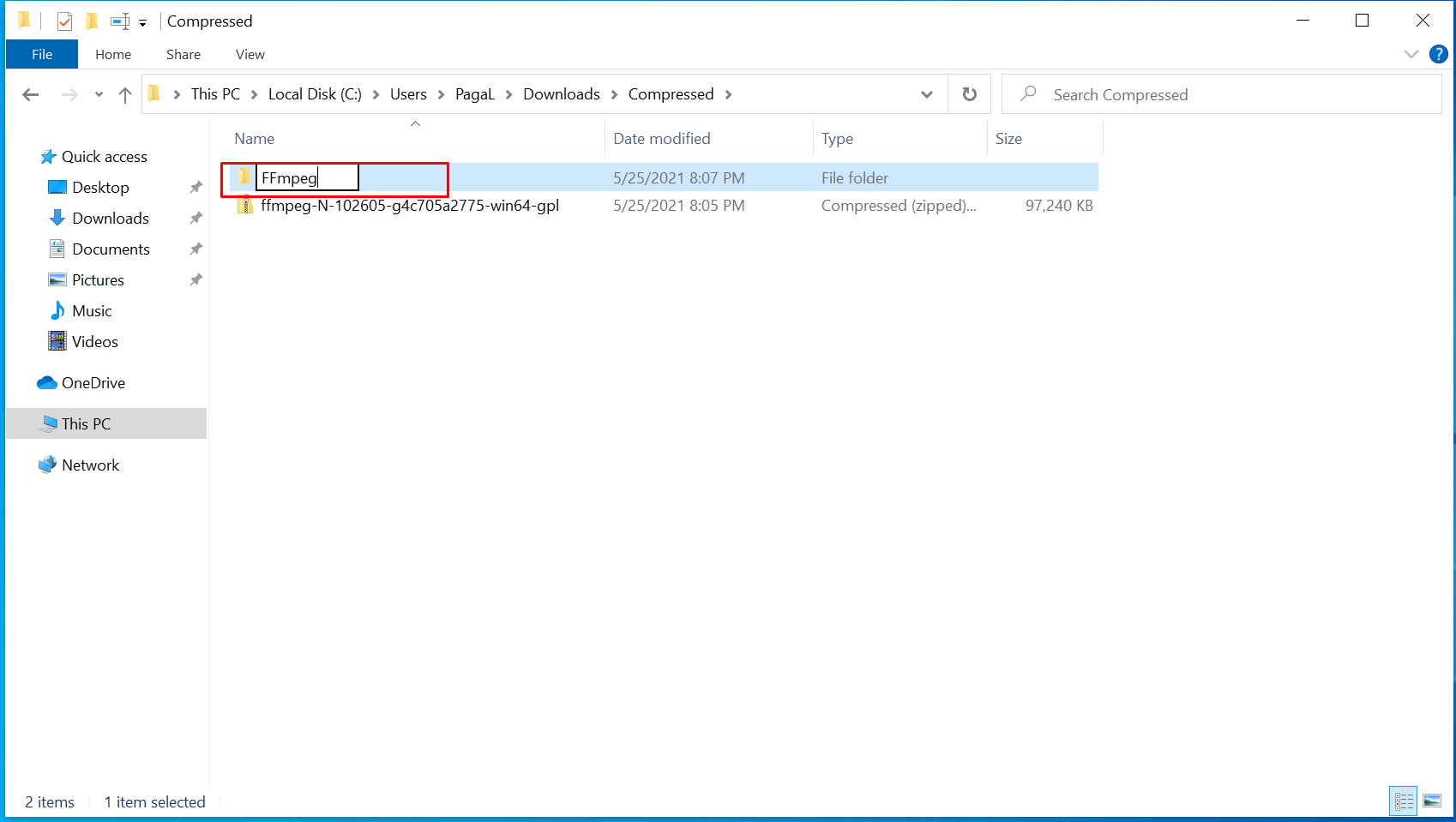 - ★ Now Rename the Extracted Folder As “FFmpeg”.