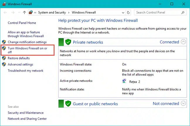 - Navigate to Control Panel—>System and Security—> Windows Firewall.