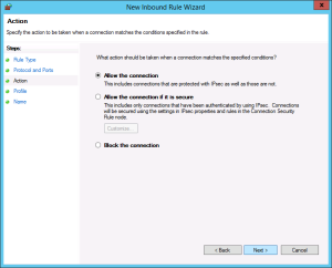 ★Finally, select whether this rule is for explicitly allowing connections on this port, or explicitly blocking connections on this port.