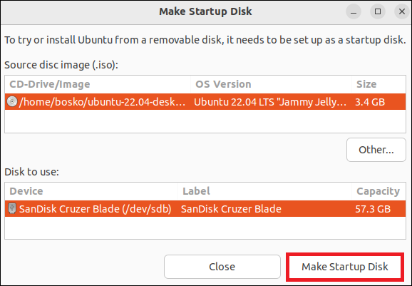 3. Use Startup Disk Creator tool to Create live USB in Ubuntu