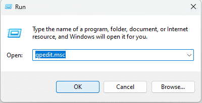 1. Right-click on the Windows Start menu and click on the “Run” option from the menu. In the Run window, type “gpedit.msc” in the dialog box and press Enter to launch the Group Policy Editor.